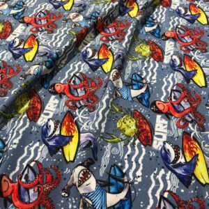 Printing on polyester provides vibrant colours that are resistant to fading as the ink is encapsulated within the fibres during the printing process and does not washout. It doesn’t wrinkle, has anti-microbial and excellent moisture wicking qualities and has a wide range of finishes, from light-weight tule and chiffon to satins, stretch fabrics through to heavyweight knits. It is ideal for sport and activewear, fashion, upholstery, decor and signage. It is also the most suitable fabric for recycling helping reduce landfill of discarded fabrics.